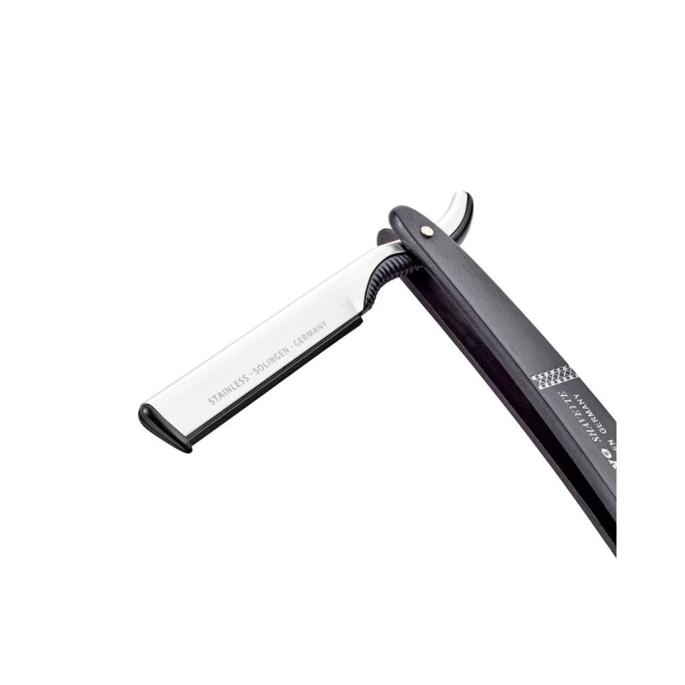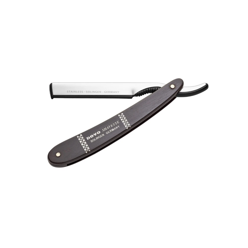 Бритва-Шаветт Dovo Shavette 201 061 Ebony Wood – це професійна шаветка (straight razor зі змінними лезами), яку використовують так само, як класичну небезпечну бритву, але без необхідності заточування. Завдяки змінним лезам кожне гоління може бути з «нульовою» гостротою, а для барбершопу це ще й важлива перевага з погляду гігієни: кожному клієнту – нове лезо.