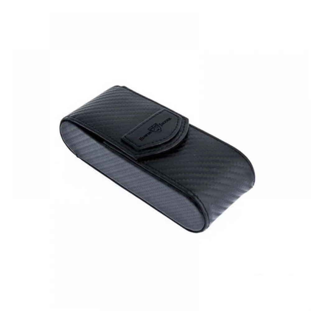 Чохол для бритви від Edwin Jagger. Підходить для Gillette Mach 3, Fusion і Double Edge безпечних подовжених (DEL) бритв. Чохол виконаний в чорному кольорі з пластика з текстурою.