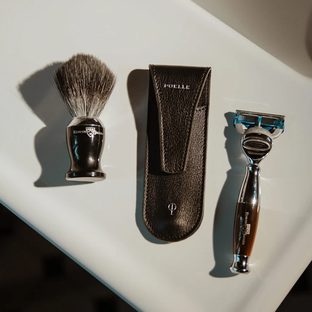 Чохол для станка шкіряний Poelle (коричневий) - унікальний аксесуар, який необхідний кожному чоловіку! Виготовлений з натуральної шкіри, закривається на липучці. Має універсальний розмір, тому підходить для будь-якої моделі станка.