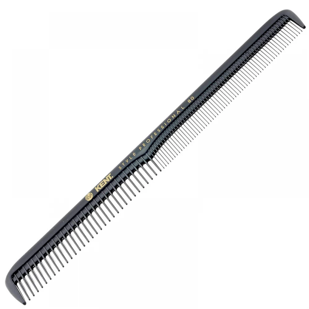 Гребінь Kent Professional 80 Master Barber Comb – це професійний інструмент, який повинен бути у кожного майстра-перукаря і не тільки. Призначений для розчісування волосся будь-якого типу та довжини, а також створення проділу та легких зачісок. Виготовлений з високоякісного пластику чорного кольору. Дуже легкий, тому ним зручно користуватися та просто застосовувати. Гребінь поділений на 2 частини, одна містить дрібні зубці, а інша – грубші. Це дозволяє більш ефективно використовувати даний гребінь і полегшує роботу з ним.