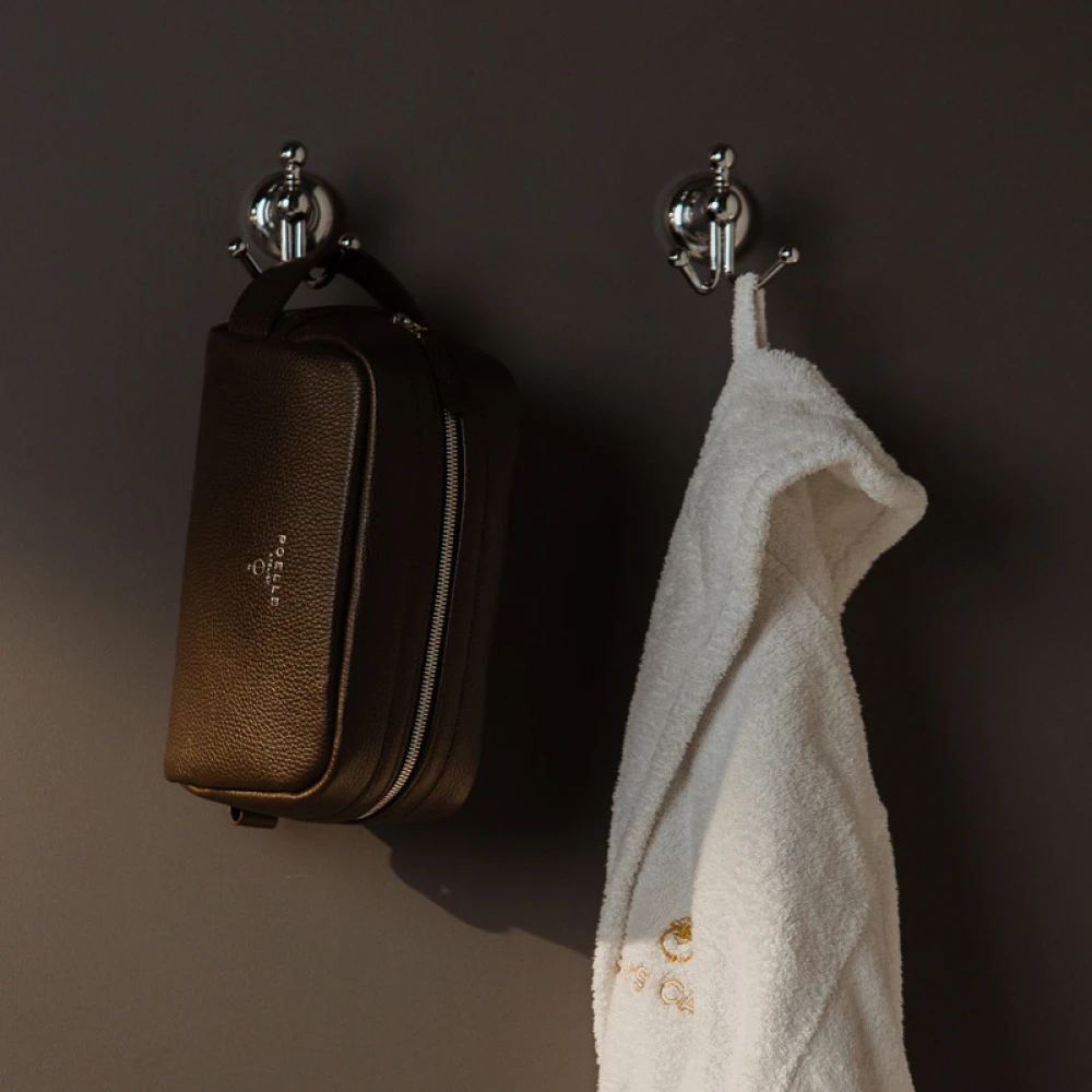 Косметичка шкіряна Poelle King (коричнева) - це зручний та вишуканий органайзер для доглядових засобів. Чудово підійде для довгих поїздок та вмістить в себе все необхідне. Розмір дозволяє вкласти всередину навіть великий шампунь, електричну зубну щітку, бритву та парфуми. Також є ручка для зручного носіння несесера. Всередині є дві кишені. До речі, несесер можна використовувати не тільки для косметики, а й як звичайний органайзер, скажімо, в автомобіль. Кілька слів про матеріали - мʼяка теляча шкіра вищого сорту, японський замок YKK, водовідштовхуюча підкладка всередині. Добре тримає форму за рахунок спеціальних дублюючих матеріалів.