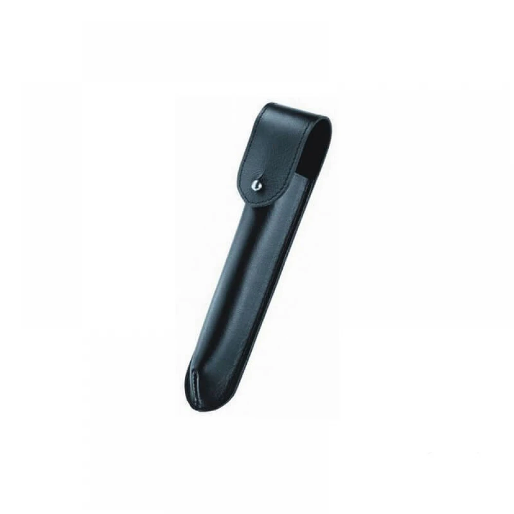 Шкіряний чохол зі срібною застібкою, виконаний з чорної натуральної шкіри і м'якою підкладкою всередині для захисту бритви.