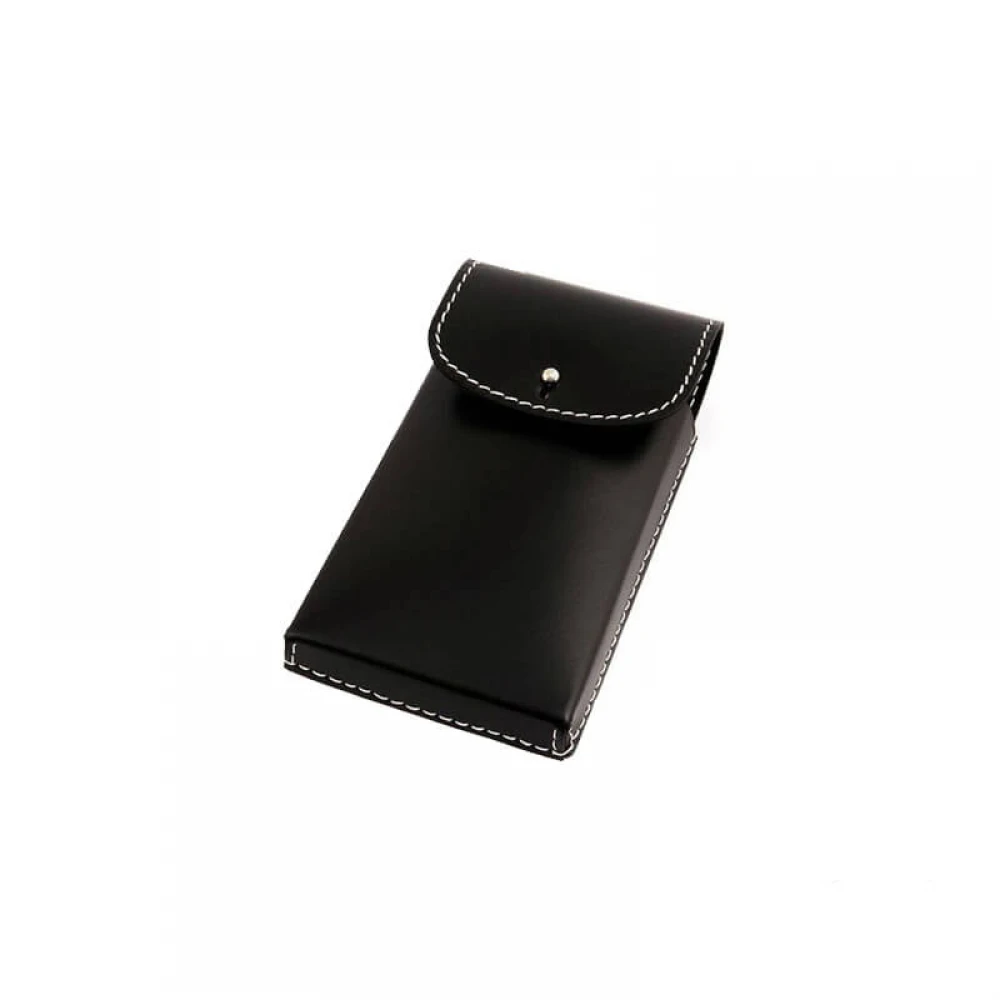Шкіряний чохол зі срібною застібкою для трьох бритв, виконаний з чорної натуральної шкіри і м’якою оксамитовою підкладкою всередині для захисту бритв.