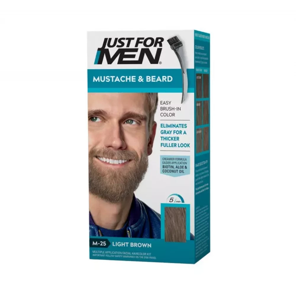 Just For Men M-25 - це стійка фарба-камуфляж для бороди зі світло коричневим кольором і тривалим ефектом протягом 8 тижнів.