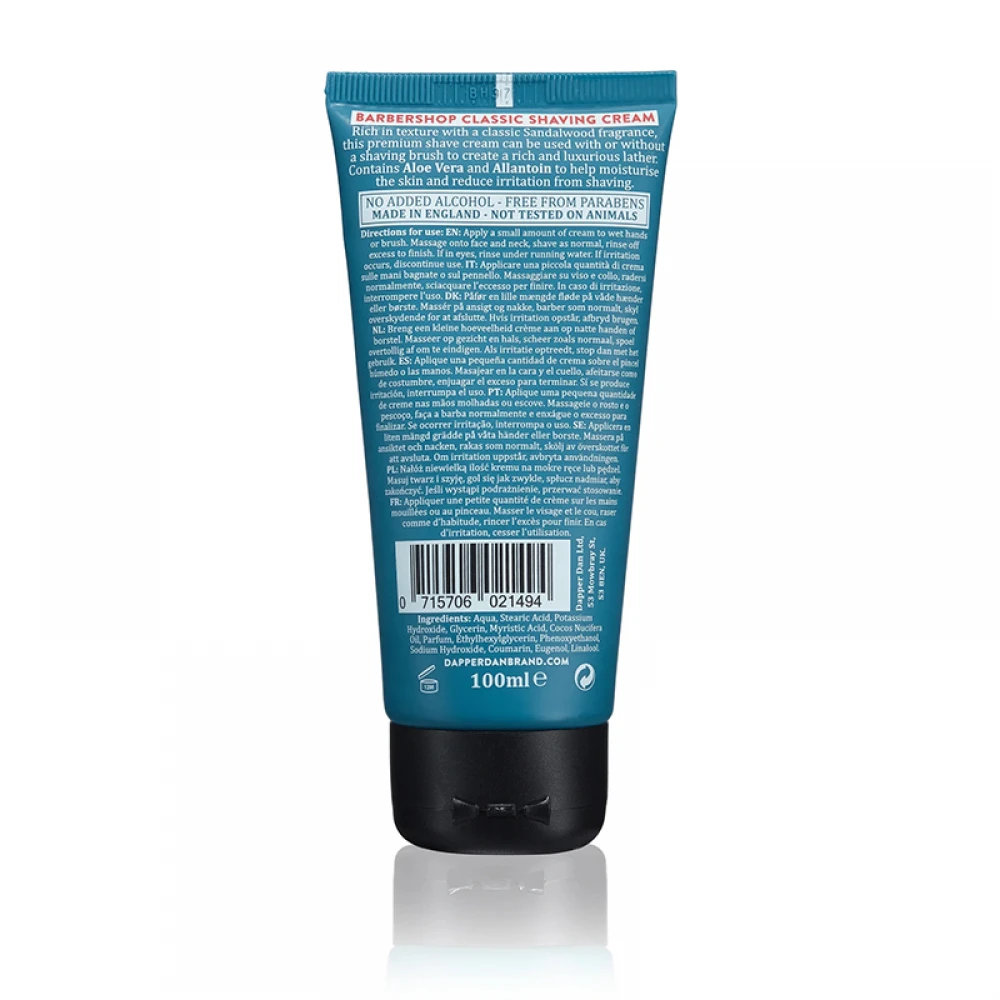 Крем Dapper Dan Shave Cream призначений для чоловіків з будь-яким типом шкіри. Він зволожує шкіру та пом'якшує волосини, забезпечуючи максимально гладке ковзання бритви, а також сприяє швидкому загоєнню дрібних порізів і подряпин.