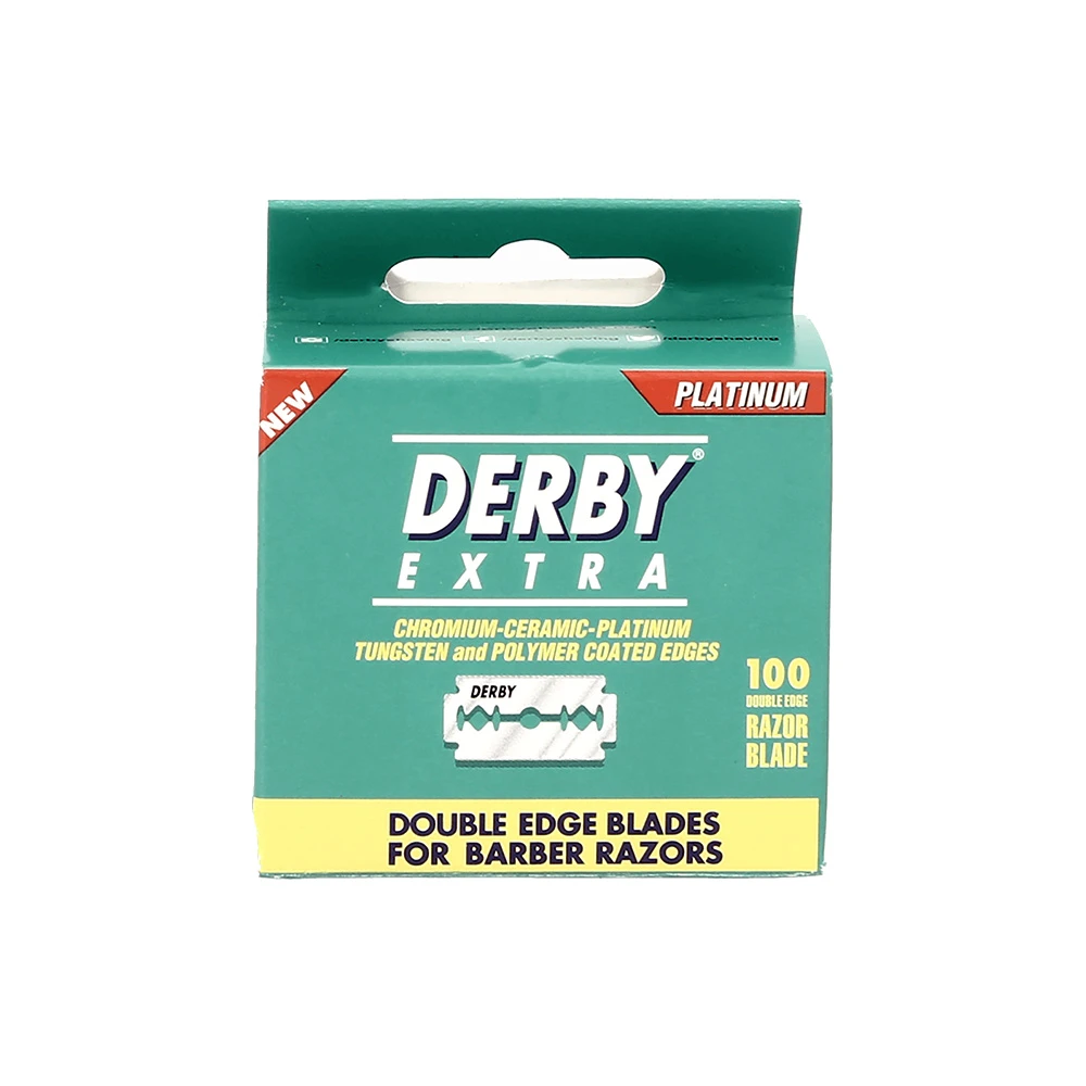 Торгова марка Derby почала своє існування ще в 1949 році. Високотехнологічне обладнання та передові методи дозволили компанії вийти в лідери індустрії з чоловічого гоління. Леза Derby Extra Mini Pack зроблені зі шведської нержавіючої сталі, яка пройшла платинову обробку. Їх п'ятишарове покриття включає кераміку, вольфрам, платину, хром і полімер. Це гарантує не тільки тривалий термін служби, а й постійний якісний рівень гоління. Так як коробка складається із 100 двосторонніх лез, їх вистачає надовго, і бігти в магазин доведеться не скоро. Тим більше, що кожна одиниця максимально гостра та міцна, користуватися нею можна далеко не один раз. Призначений продукт для Т-подібних бритв із головкою під дві сторони. Усі леза упаковані в індивідуальну упаковку, тому їх зручно брати з собою в дорогу, не боячись за гігієну та можливість випадкового порізу. Зроблено в Туреччині.