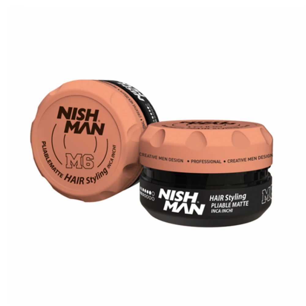 Матова пластична паста Nishman Hair Styling Wax M6 100 мл – сильна фіксація та зволоження | олія Інка Інчі, аромат ванілі та меду