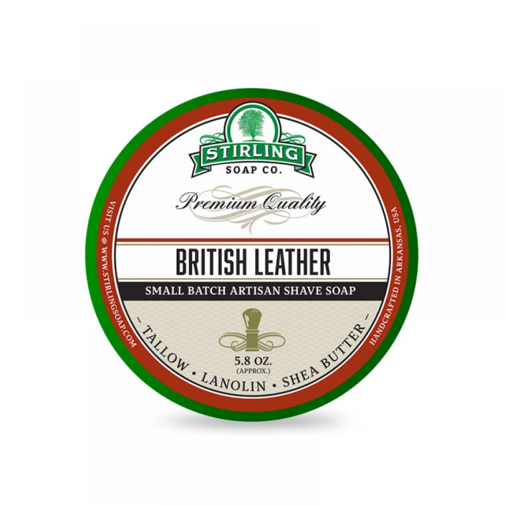 Stirling Shaving Soap British Leather — це високоякісне натуральне мило для гоління з чудовими зволожуючими та піноутворюючими властивостями, а також оригінальним ароматом від американського бренду.