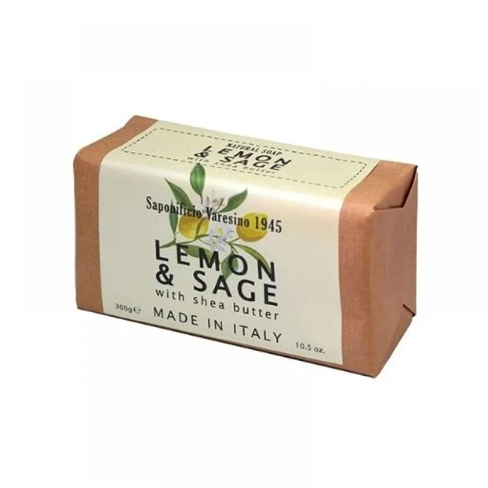 Saponificio Varesino Lemon and Sage Bar Soap — це натуральне туалетне мило з яскравим та освіжаючим ароматом цитрусу та шавлії від авторитетного італійського виробника.