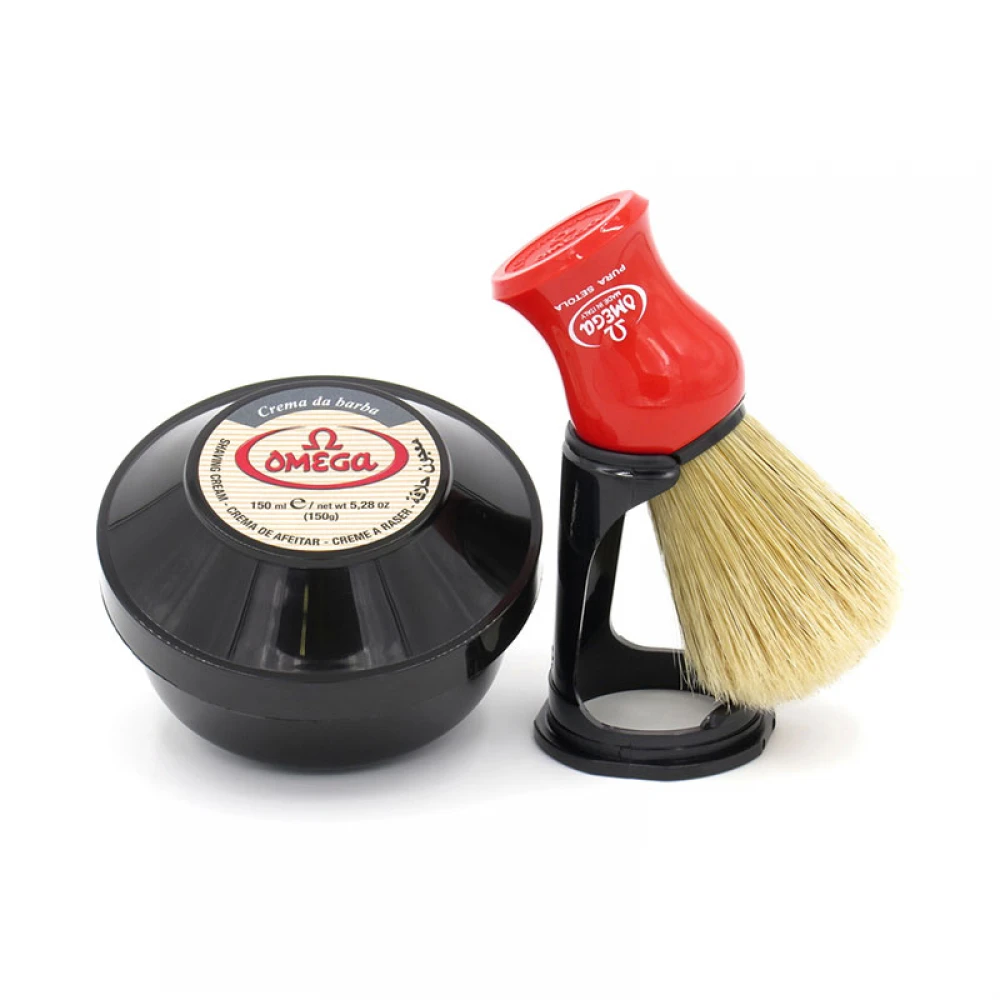 Набір для гоління Omega 46065 є ідеальним помічником кожного чоловіка, який допоможе зробити процес гоління надзвичайно легким та комфортним. Набір складається з помазка, натурального мила для гоління, а також спеціальної стійки, яка допоможе компактно ставити і зберігати помазок. Мило для гоління зроблене з натуральних речовин. Воно допомагає у процесі гоління, пом’якшуючи щетину і захищаючи шкіру від подразнення. Помазок виготовлено з високоякісного аморфного матеріалу червоного кольору, який має високу твердість та стійкість до подряпин. Щетина помазка з натурального ворсу кабана. Весь набір продається в гарній сучасній коробці, тож він прекрасно підходить які подарунок.