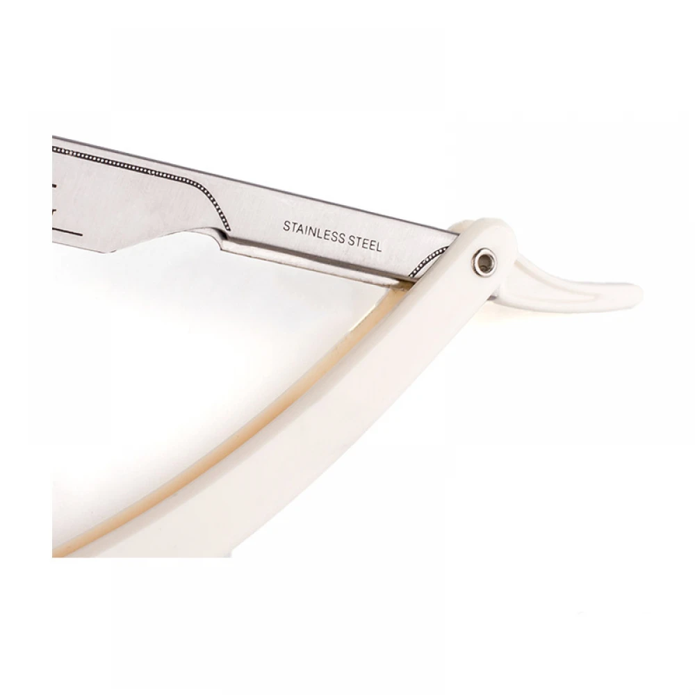Ручка бритви виготовлена з білого пластику. Тримач леза – нержавіюча сталь. Підходить як для новачків, так і для професіоналів. Зручна для використання в перукарнях.