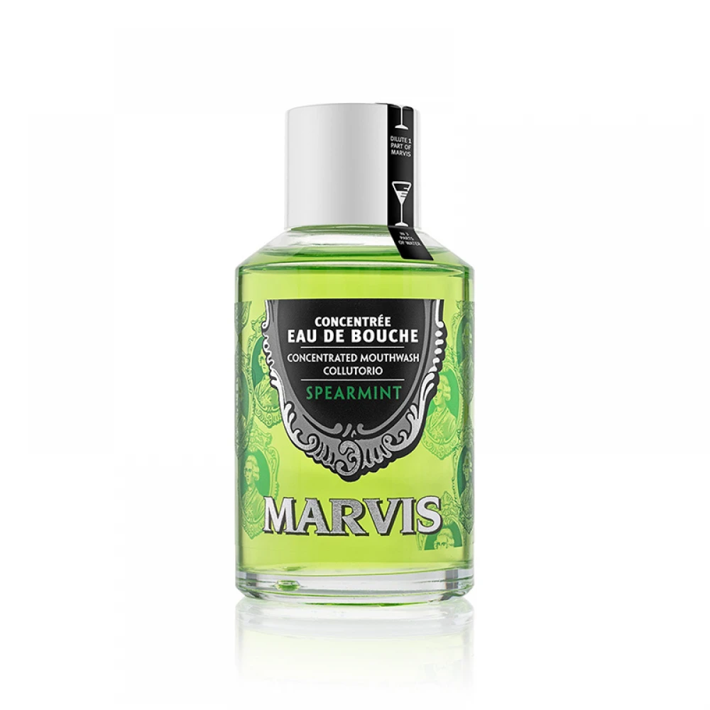 Marvis Spearmint чудове рішення для ополіскування порожнини рота. Рідина допомагає не тільки освіжити дихання, зробивши його приємним, але й позитивно впливає на мікрофлору ротової порожнини, захищаючи від зубного нальоту і нейтралізуючи шкідливу активність бактерій, тим самим запобігає розвитку карієсу та інших захворювань. Крім того, насичений смак м'яти допоможе продовжити відчуття свіжості і приємного холоду в роті.