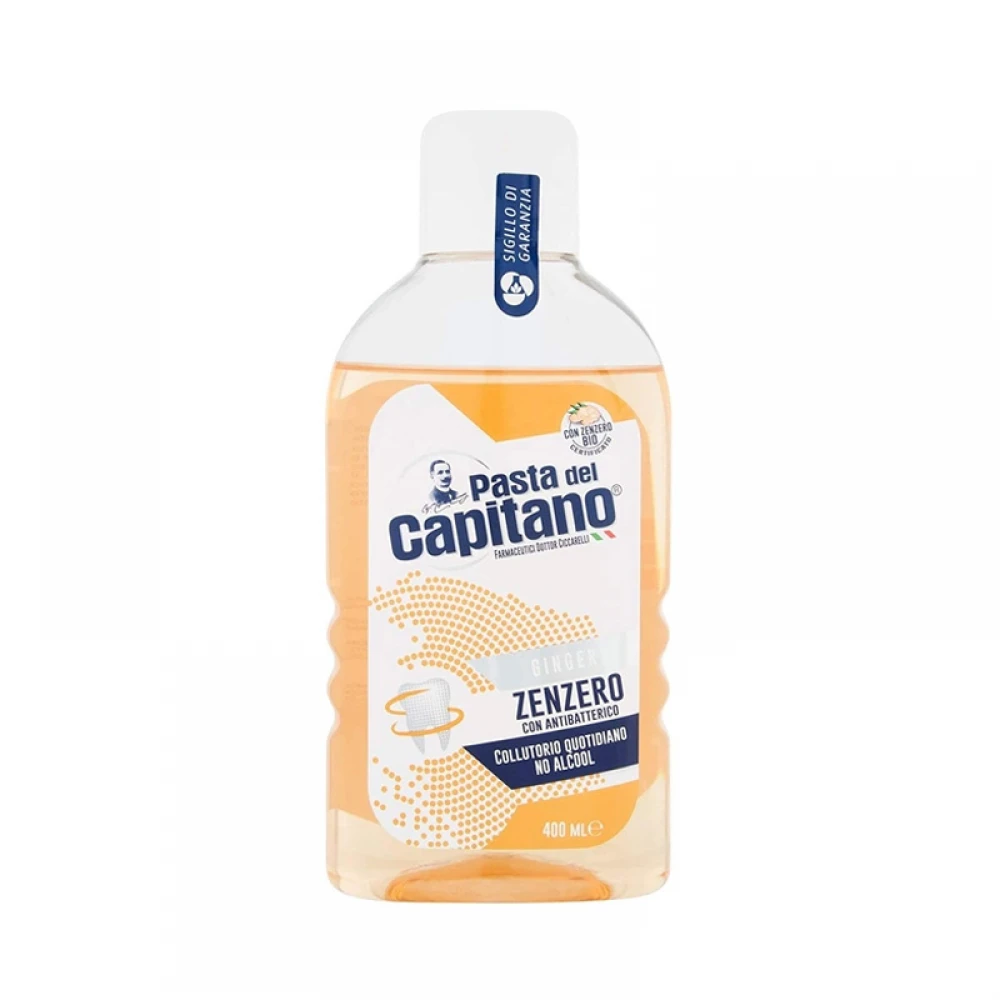 Ополіскувач для ротової порожнини Pasta Del Capitano Zenzero вирізняється вкрай незвичним імбирним смаком. Він приємний у застосуванні, а головне — ефективний. Забезпечує сильну антибактеріальну дію та загалом піклується як про зуби, так і про ясна. Збагачений цинком (Sulfetal Zn), який очищає, загоює і має антибактеріальну дію, а сертифікований органічний імбир є природним освіжуючим засобом.ПЕРЕВАГИ: