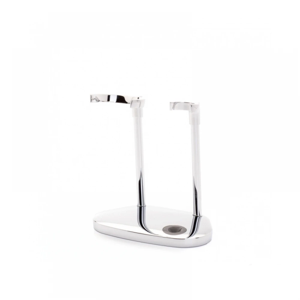 Підставка під Станок і Помазок Mühle RHM 87 – це надійний аксесуар для зберігання засобів для гоління у ванній кімнаті. Вона виготовлена з високоякісних матеріалів та повністю покрита хромом, що надає даній підставці правильну вагу, щоб надійно утримувати своє положення на поверхнях і не перекидатися від легких поштовхів. Підставка призначена для зберігання станків і помазків стандартних розмірів у правильному вертикальному положенні. Це захистить Ваш станок і помазок від руйнівної вологи і збільшить термін їх служби. Дана підставка стане справжньою окрасою вашої ванної кімнати. Вона може стати хорошим подарунком для чоловіків.