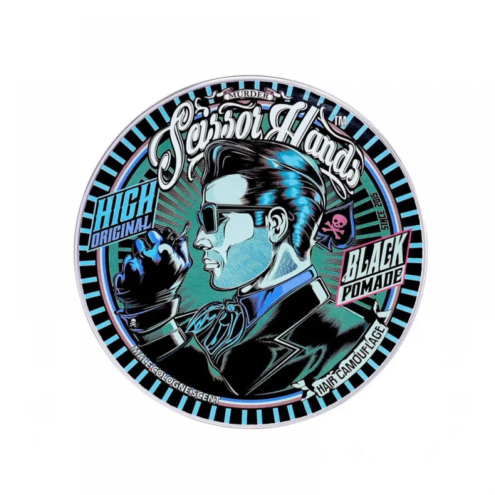 Матуюча, чорна помада для укладки чоловічого волосся Scissor Hands Murder. Помада розроблена не тільки для укладки, а головним чином для створення образу, її основна функція – затемнення волосся. Але при цьому фіксуюсі властивості не менш високі, вона підходить для класичних або ретро зачісок. Продукт можна використовувати і як парфум для волосся, для цього слід нанести зовсім небагато засобу. Має парфумований, свіжий, яскраво виражений аромат. Моделюючу помаду можна використовувати для будь-якої довжини волосся, в будь-яку пору року.
