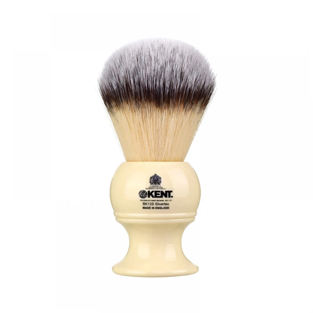 Ручка помазка виконана в зручній ергономічній формі, що забезпечує відмінну маневреність під час збивання піни. У свою чергу, щетина Kent BK12S заповнена інноваційним фібровим матеріалом Silvertex. Синтетичний ворс від Kent м'яко стикається зі шкірою, а також прекрасно утримує воду і тепло, завдяки чому помазком легко утворити насичену піну і максимально ретельно наповнити волосся, роблячи його м'яким і піддатливим для леза.