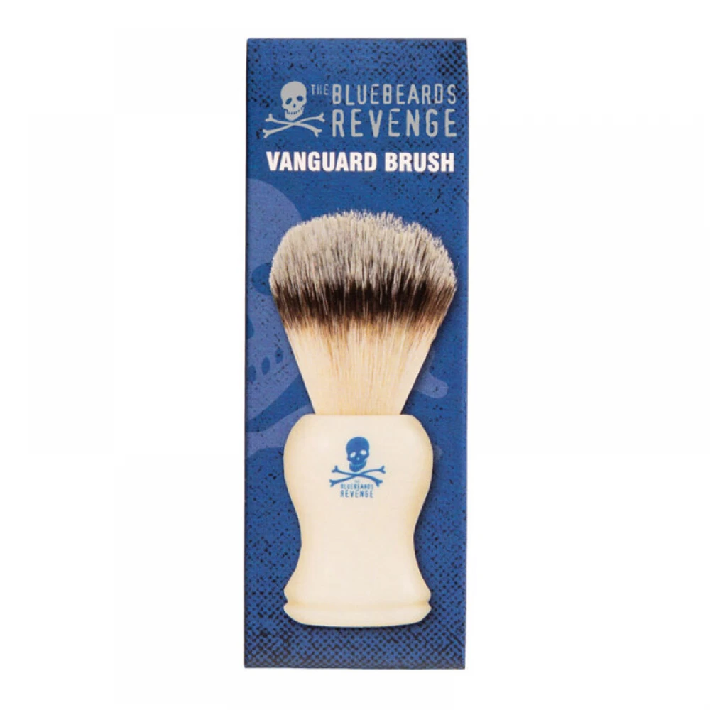 Помазок для гоління The Bluebeards Revenge Vanguard Synthetic Shaving Brush – це сучасний аксесуар вологого гоління, зроблений британськими майстрами для справжніх цінителів цього класичного мистецтва. За останнє десятиліття, виробництво помазків з синтетичного ворсу помітно зробило крок вперед і помазок The Bluebeards Revenge Vanguard реальне тому підтвердження. Його щетина виготовлена ​​із синтетичної фібри найвищої якості. Вона м’яка, але при цьому гнучка, міцна і дуже довговічна. Помазок Vanguard The Bluebeards Revenge прекрасно імітує барсучий ворс найвищої категорії – silver tip, як по якісним характеристикам, так і за зовнішніми. Він відмінно утримує воду, виробляє щільну і рясну піну, надзвичайно приємний на дотик.
