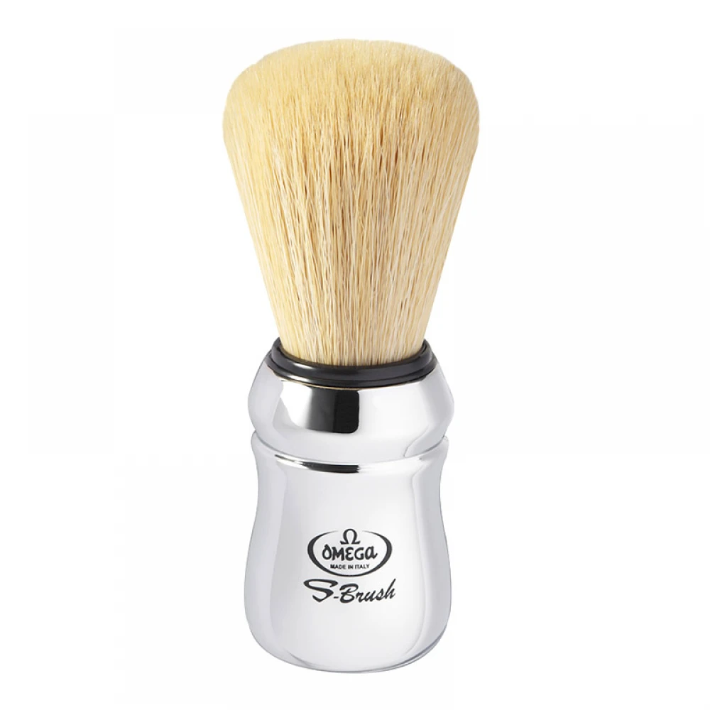 Помазок для Гоління Omega S-brush S 10083 Синтетика стане вашим незамінним помічником у щоденному процесі гоління. Він дозволяє з легкістю приготувати густу піну для гоління, а також рівномірно нанести її на обличчя. Щетина помазка світлого кольору, виготовлена із синтетичного волокна середньої жорсткості. Це допоможе тому, у кого алергія на натуральний ворс. Ручка помазка виконана з міцного хромованого пластику з нанесеним логотипом компанії-виробника. Має спеціальну S-подібну форму для зручного утримування в руці. Даний помазок стане ідеальним вибором для подарунка справжнім чоловікам.