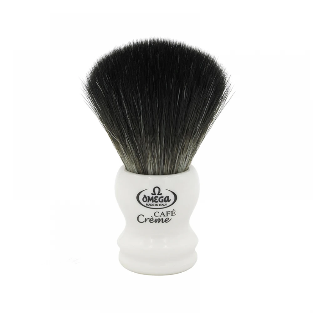 Синтетичний помазок для гоління Omega BLACK HI-Brush має білу смоляну ручку. Помазок Omega 96896 належить до серії «Café Crème». Розмір: 103 мм.
