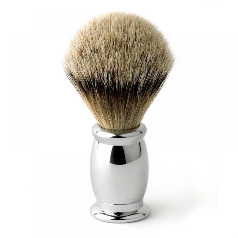 Помазок з колекції Bulbous. Наповнений справжнім ворсом борсука категорії super badger. Хромована латунна ручка. Підходить для будь-якого типу шкіри.