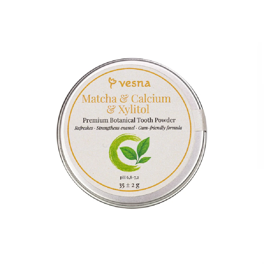 Характеристики: Преміальний зубний порошок Vesna Матча, Кальцій та Ксилітол 35 гр