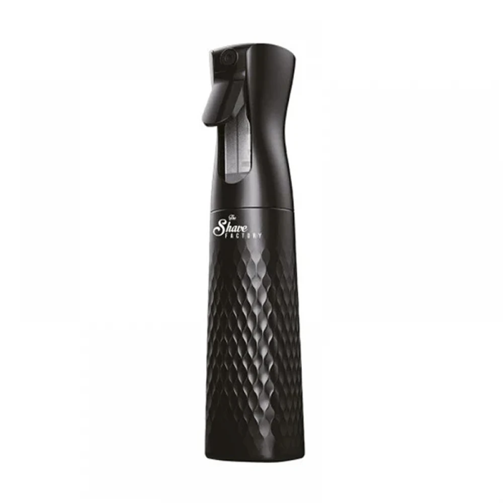 Розпилювач перукарський The Shave Factory об’ємом 300 мл - необхідний і незамінний аксесуар у будь-якому салоні та перукарні. Він безперервно виробляє дрібний вологий туман і виділяє потрібну кількість води завдяки дуже хорошій герметичній насадці. Довша розпилювальна форсунка одним натисканням на 50% довша, ніж у інших розпилювачів. Це забезпечує свободу рухів на 360°. Розпилювач можна використовувати під будь-яким кутом. Зручно тримати в руках, легко і просто використовувати. Виготовлений із міцного пластику, елегантного чорного кольору.