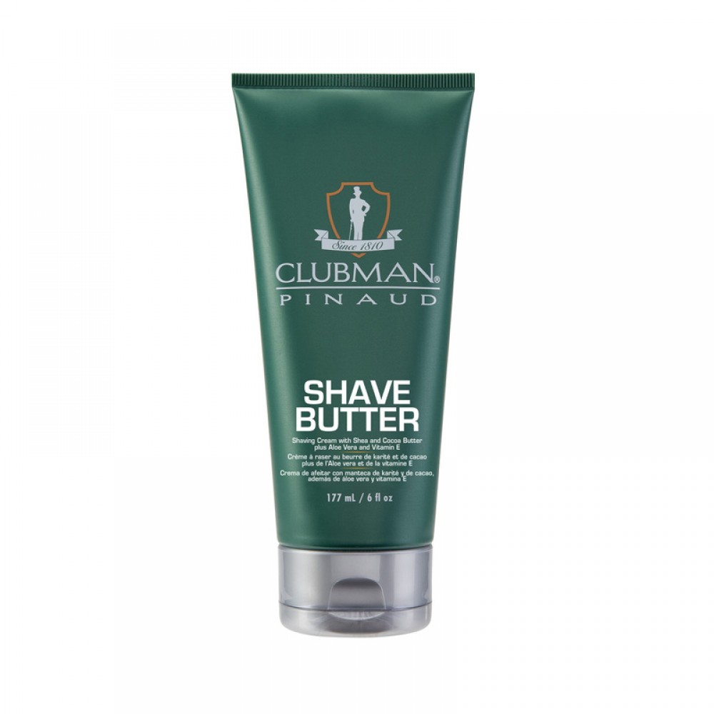 Крем для бритья Clubman Pinaud Shave Butter содержит в составе масло ши и какао, алоэ вера и витамин Е, благодаря которым подходит даже для очень чувствительной кожи. Он успокаивает и дарит ощущение свежести, увлажняет и смягчает. Каждый из компонентов этого крема для бритья защищает кожу от раздражений, делает бритье легким, а кожу мягкой. Благодаря специальной формуле крема, кожный покров надолго сохраняет водный баланс, перестает шелушиться, чесаться. Кожа после процедуры бритья остается увлажненной и мягкой.