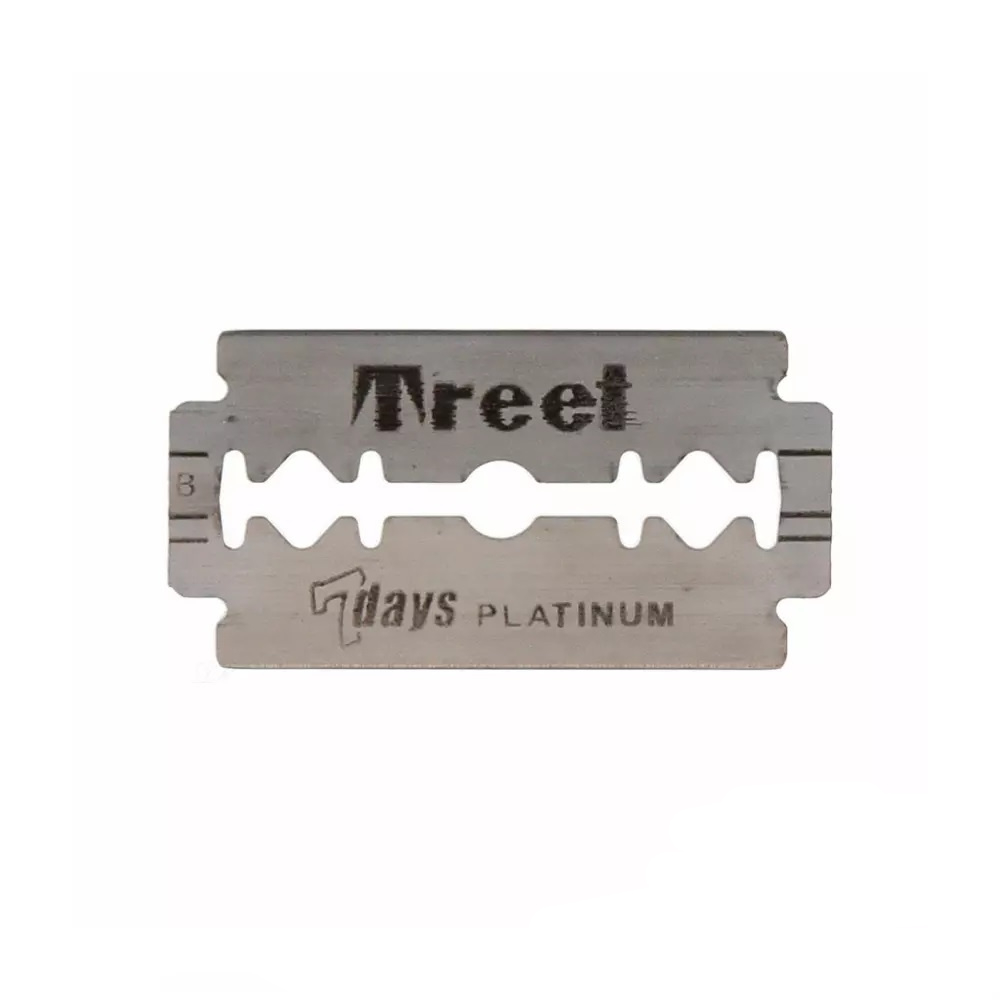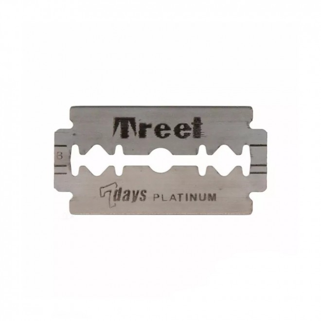 Treet 7 Days Platinum — классические двусторонние лезвия с платиновым покрытием для чистого и комфортного бритья. Из высококачественной стали: обеспечивают плавное скольжение и снижают риск раздражений, подходят для ежедневного использования и чувствительной кожи. Совместимы со всеми стандартными Т-образными (DE) станками.