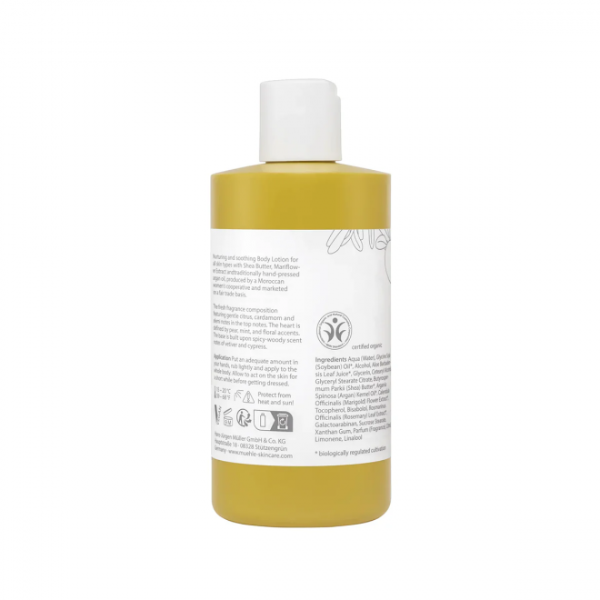 Лосьон для тела Muhle Organic Body Lotion – это профессиональное средство для ежедневного ухода от знаменитого немецкого бренда. В отличие от многих косметических средств, в названии линейки Muhle слово «Organic» – не просто рекламный вброс. Качество и безопасность этой продукции подтверждает сертификат от BDIH – международной ассоциации контроля качества косметики с органическим составом.