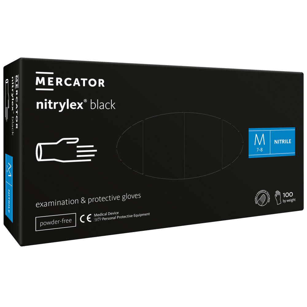 Nitrylex Black Protective Gloves продается в упаковке, в которой находится 100 перчаток. Такого количества вполне достаточно для длительного использования. Размер Nitrylex Black — M (обхват ладони составляет 19 см).
