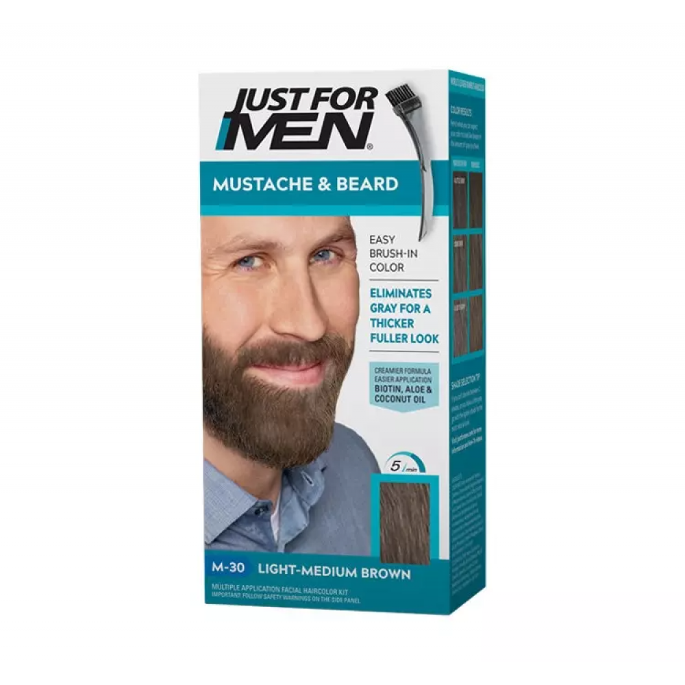 Coloring Gel Light Medium Brown M-30 гель для бороди, вусів і бакенбард від Just For Men спеціально розроблений для фарбування волосся на обличчі, яке відрізняється від волосся на шкірі голови і вимагає більш концентрованої та проникної формули. Густий гель живить і пом'якшує волосся під час фарбування.
