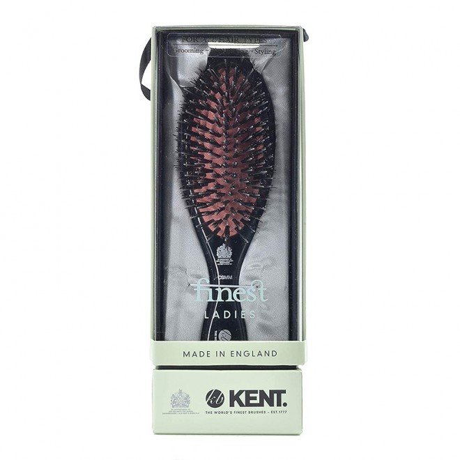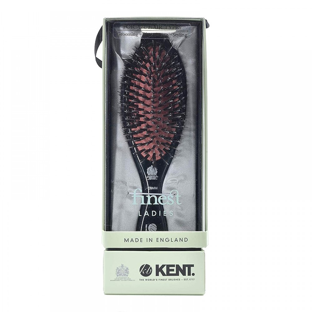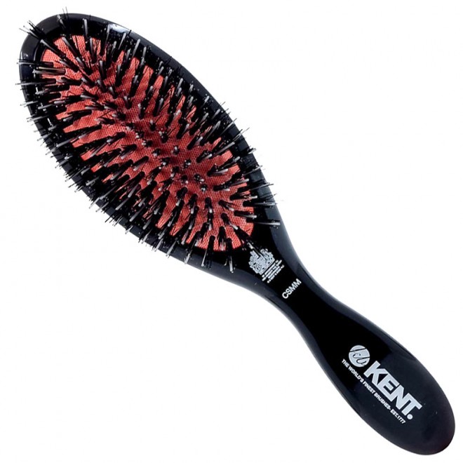 Женская щетка KENT CSMM средних размеров с овальной формой кисти. Мягкая подушечка наполнена черною натуральною щетиной и немного черного нейлона. Щетка с эксклюзивным дизайном подходит для волос разной длины (от коротких до длинных). Она легко справится с густыми и сильно непослушными волосами.