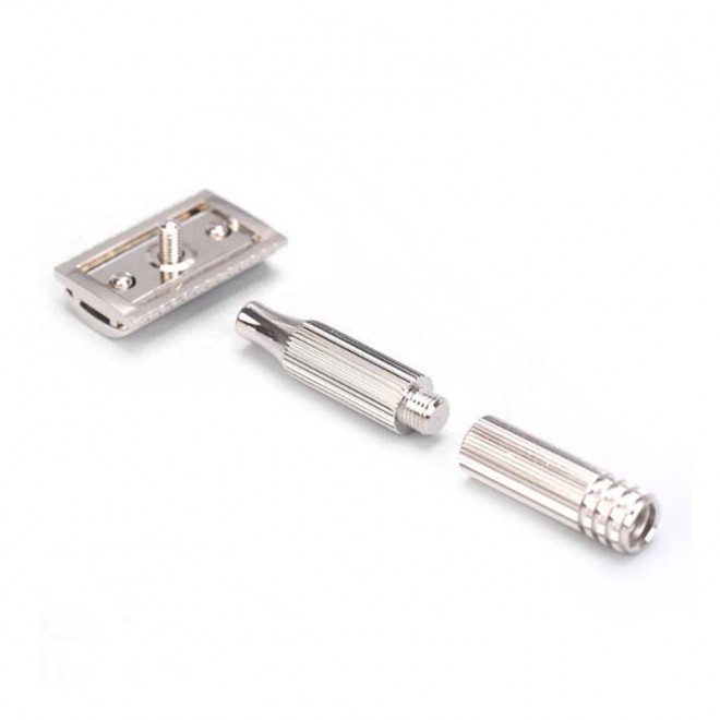 Ручка станка изготавливается из высококачественной латуни, в то время как для головки бритвы, специалисты из Yaqi использовали прочный цинковый сплав, таким образом продукт рассчитан на длительный термин применения и не привередлив в эксплуатации, что в сочетании с компактной формой делают станок отличным компаньоном в дороге.