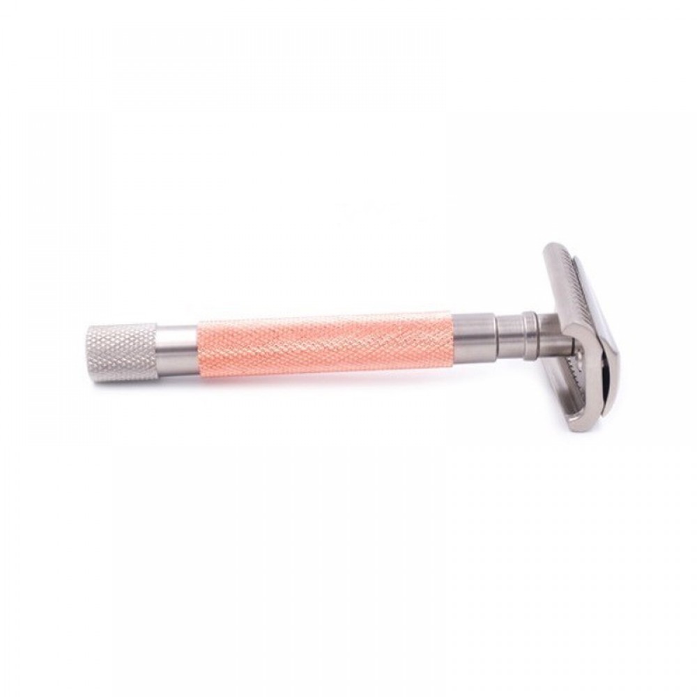 Т-образный станок 55SL-RG от Parker — это стильный и практичный аксессуар, выполненный в цвете розового золота, который сделает рутинный процесс бритья не только продуктивным и безопасным, но еще и максимально приятным мужским ритуалом.