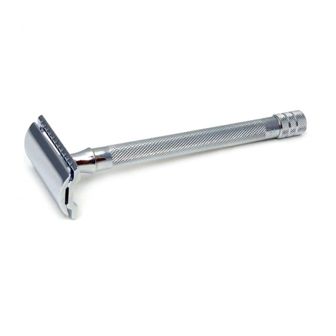 Безопасная бритва Merkur Long Handle Unisex Safety Razor 405080 - это самая длинная бритва с двойным лезвием, длина которой составляет примерно 12 см. Благодаря такой длине бритва идеально подходит для бритья ног и подмышек, а также любых других зон. Эта бритва, состоящая из трех частей, идеально подходит как для мужчин, так и для женщин, имеет стильное хромированное покрытие и рифленую ручку. Тонкая влажная ручка бритвы имеет надежный нескользящий хват благодаря ромбовидному рисунку. Литая под давлением цинковая головка с латунной ручкой, хромированная.
