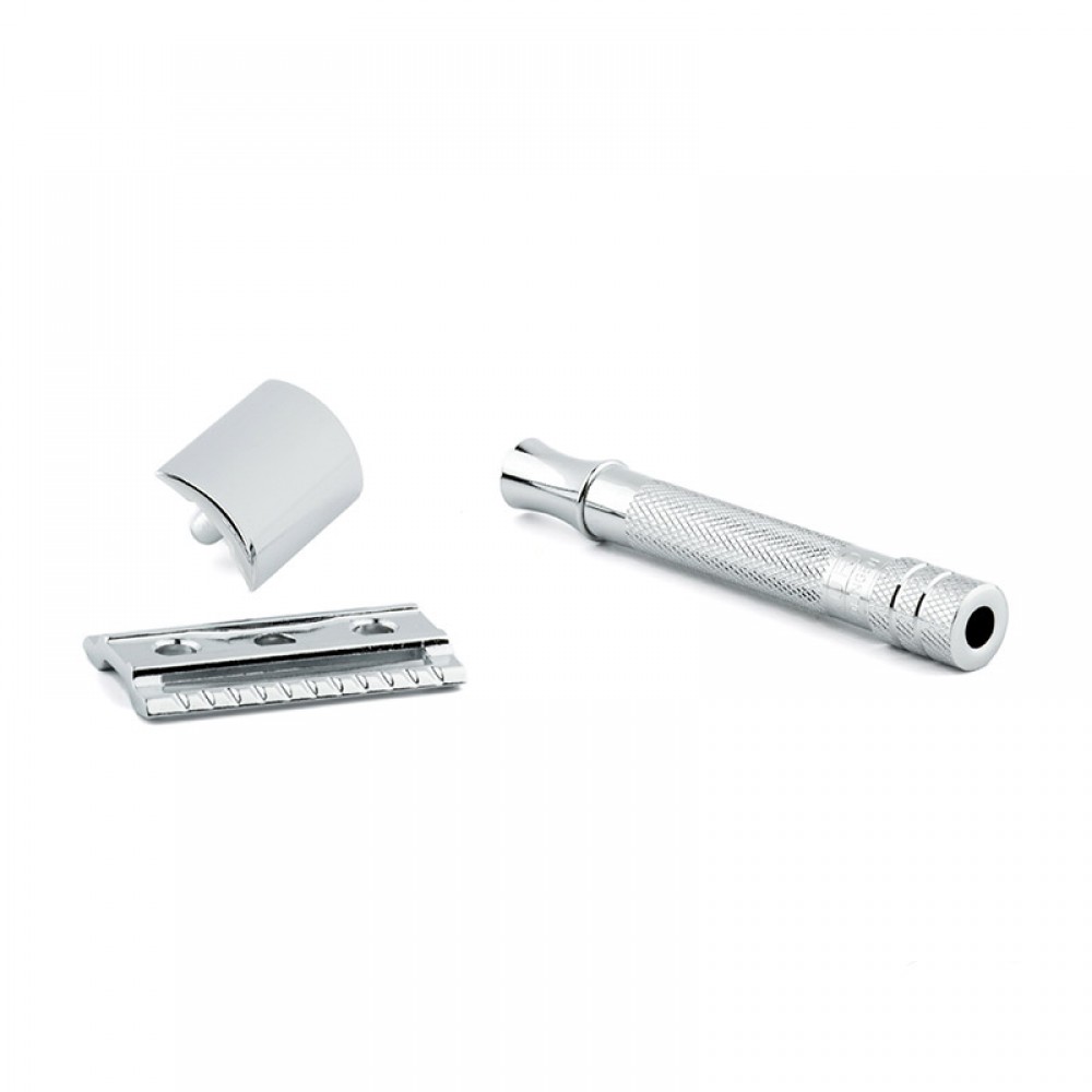 Как и раньше, все в том же стиле, не изменяя своим принципам в основе данной безопасной бритвы лежит нержавеющая сталь от Золинген, немецкого качества. Есть возможность замены лезвия. Гребень хорошо подходит для бритья густой бороды. Верхняя часть тяжелее ручки, что позволяет брить кожу без дополнительного давления.