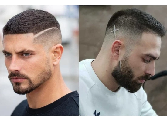 Это армейская разновидность Полубокса. Макушка выстригается на полсантиметра, затылок и виски выбриваются полностью. Прическа не нуждается в укладке, поэтому подходит для ленивых мужчин или, наоборот, очень торопливых. - Полубокс с пробором