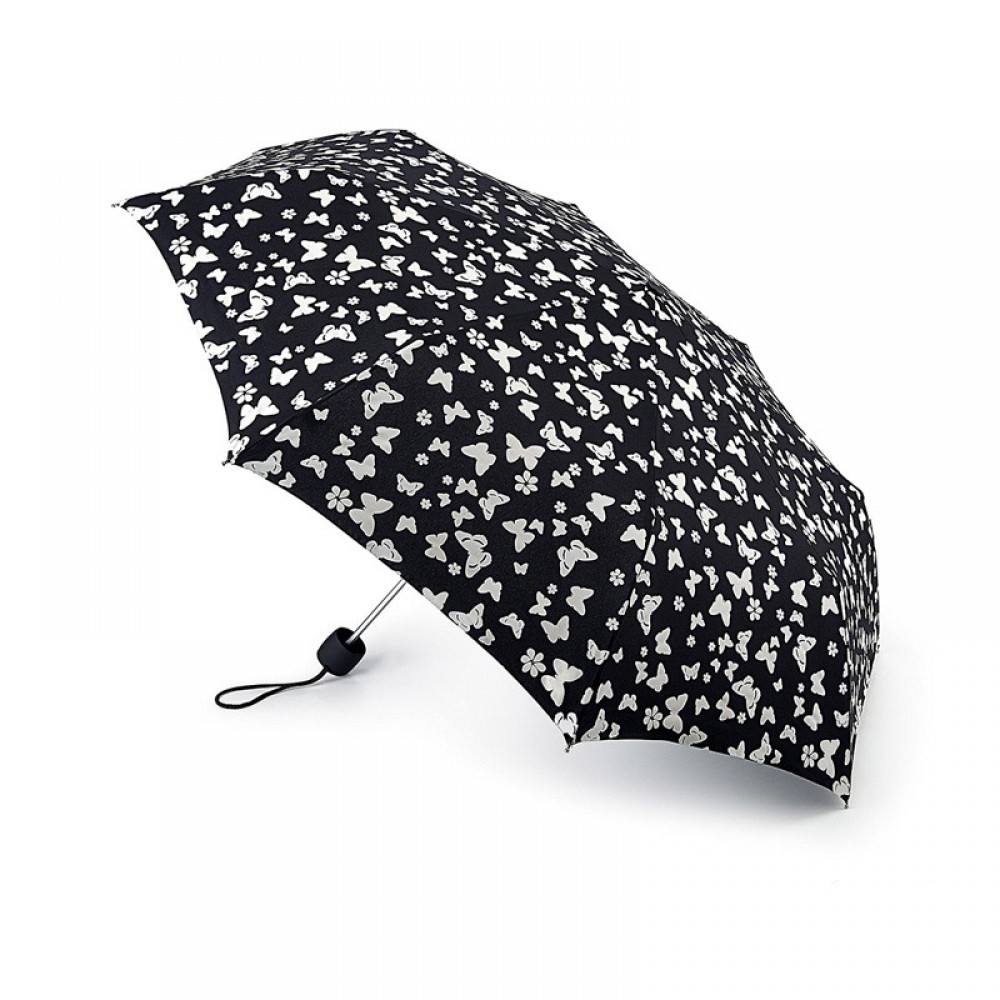 Женский зонт SUPERLITE-2 BATTERLIFE WATER REACTIVE известного английского бренда FULTON с уникальным дизайном поразит вас. Рисунок-хамелеон меняет свой цвет из-за реакции с водой – при намокании белые бабочки на черном фоне стают разноцветными.