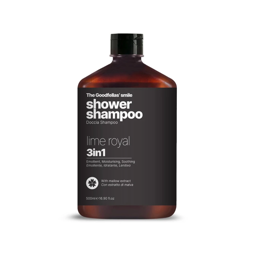 Шампунь (3 в 1) The Goodfellas Smile Royal Lime 500 мл – універсальний чоловічий душ-шампунь, який поєднує в собі гель для душу, шампунь для волосся та засіб для щоденного очищення тіла. Ідеальний вибір для тих, хто любить відчуття максимальної свіжості та чистоти, але не хоче захаращувати ванну десятком флаконів.