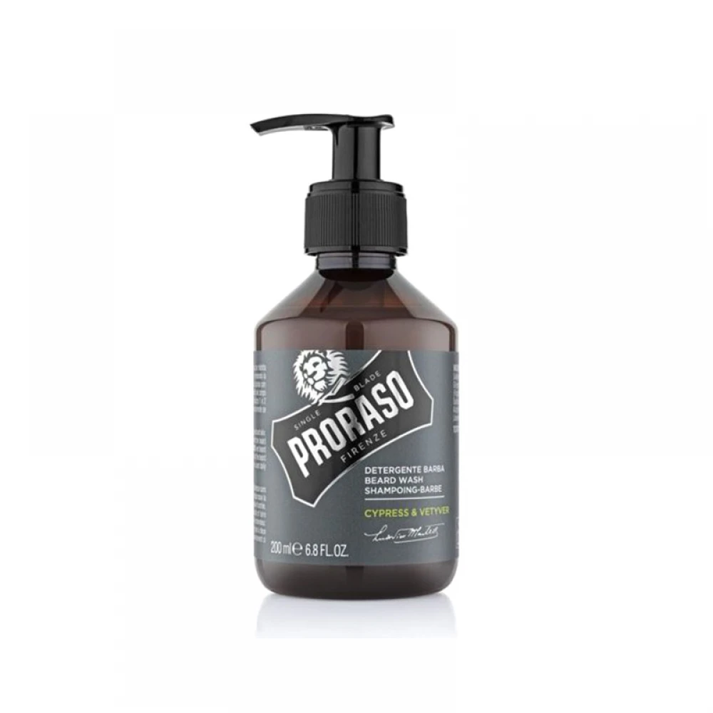 Шампунь для бороди Proraso Cypress & Vetyver Beard Wash живить волосся і заспокоює роздратовану шкіру. З запахом кипарису та свіжого ветівера.