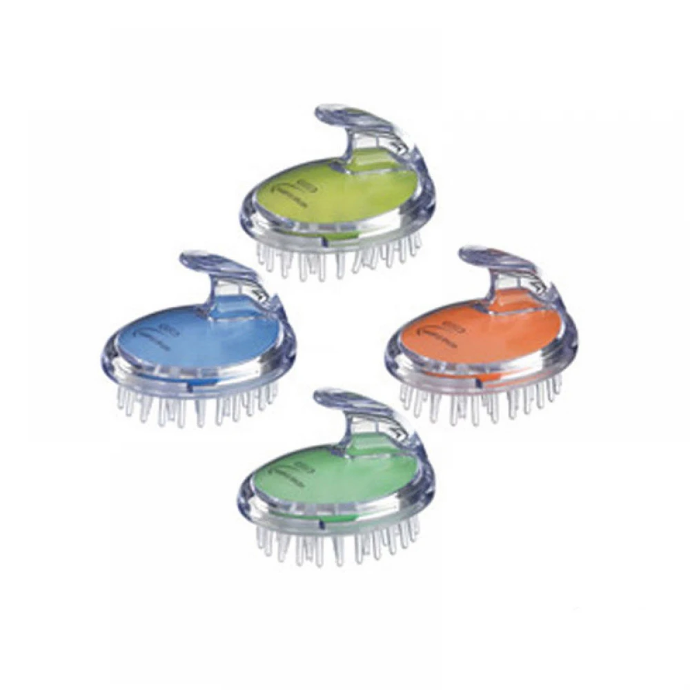 Щітка для масажу голови. Матеріал для виготовлення – прозорий пластик. Щетина виготовлена з силікону. Рівномірно розподіляє шампунь і кондиціонер по волоссю. Щітка представлена в чотирьох кольорах.
