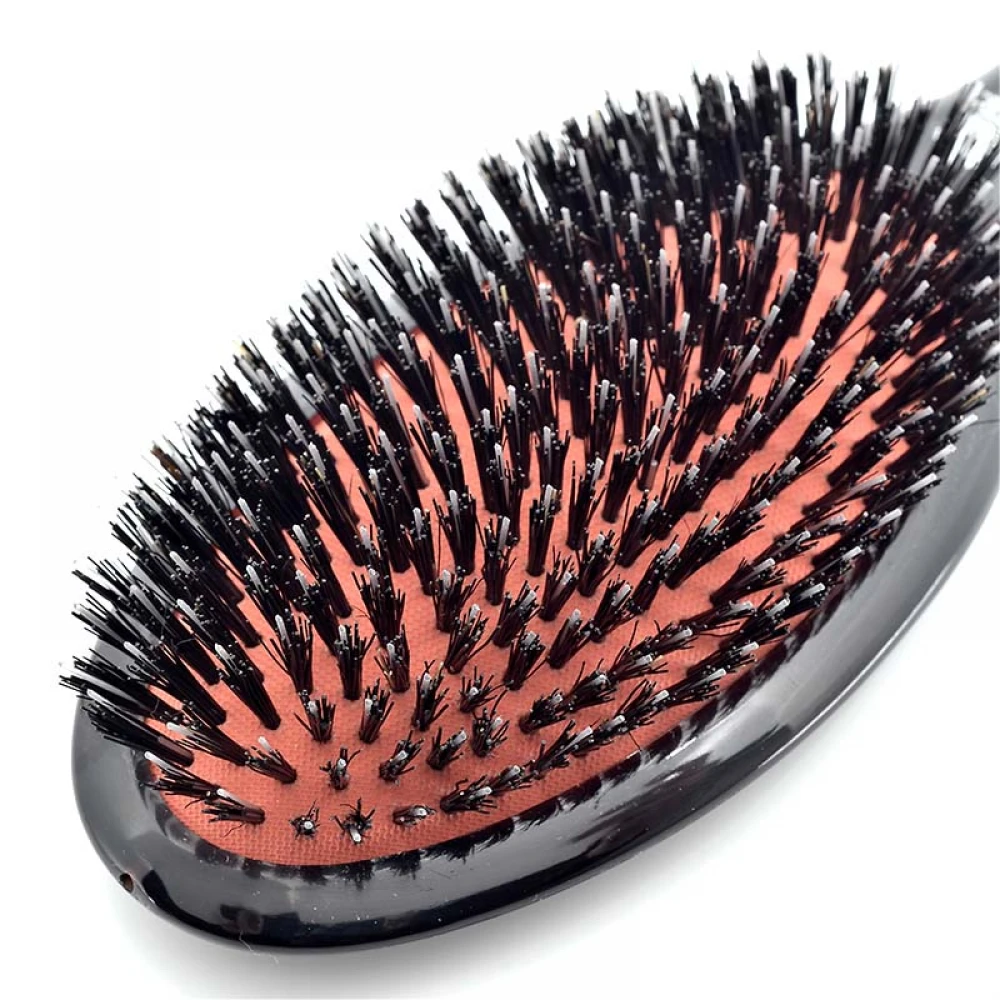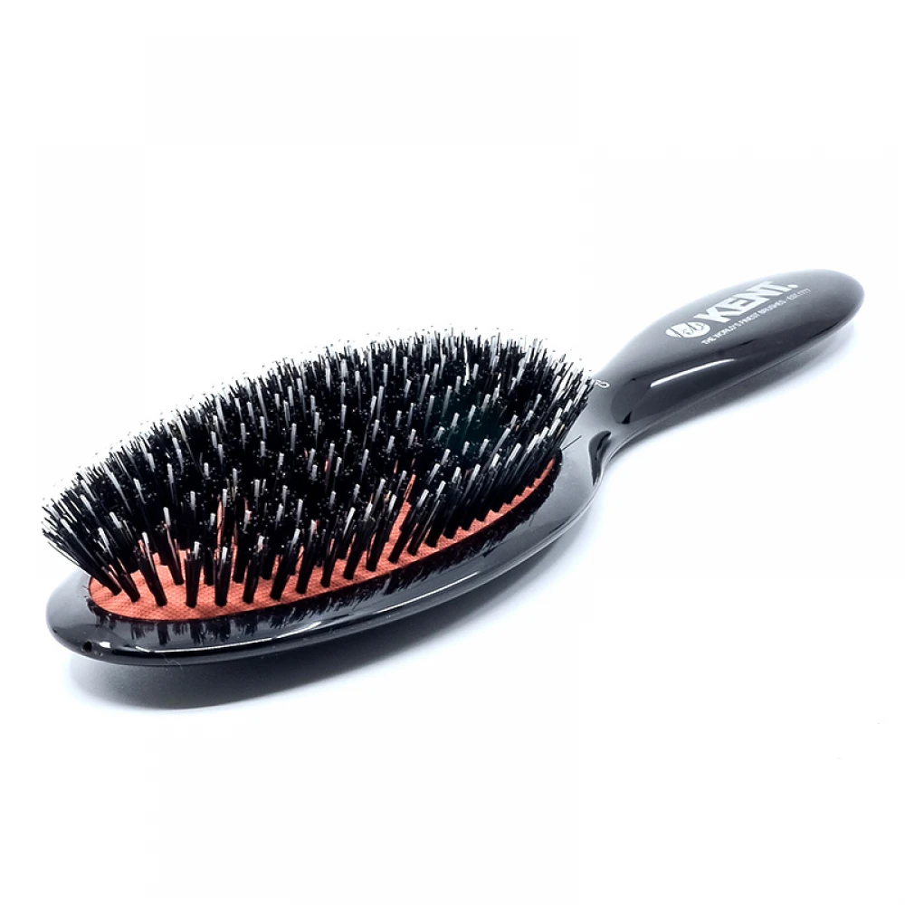 Жіноча щітка для густого волосся KENT CSML з ручкою чорного кольору і такими ж темними ворсинками змішаного типу. Підкладка під ворсинками сяє приємним світло-червоним відтінком.