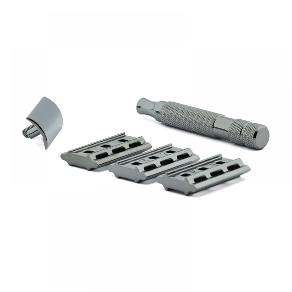 Rockwell 6 C Gunmetal – це повністю регульована Т-подібна бритва, яка підходить для будь-якого типу шкіри і щетини різної довжини і жорсткості. Для близького і комфортного гоління! Бритва входить в лінійку Rockwell Chrome, виготовляється із хромованого цинкового сплаву. Має солідну вагу і добре збалансована для зручного використання.
