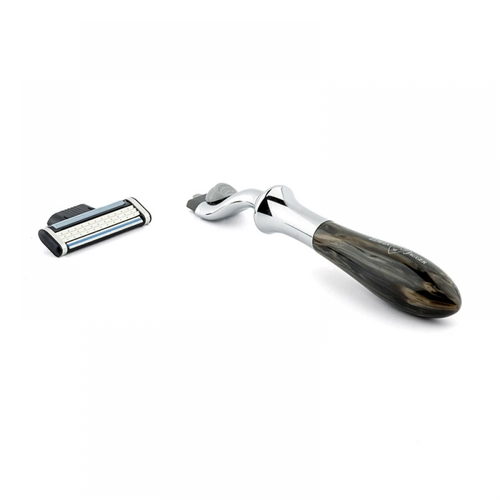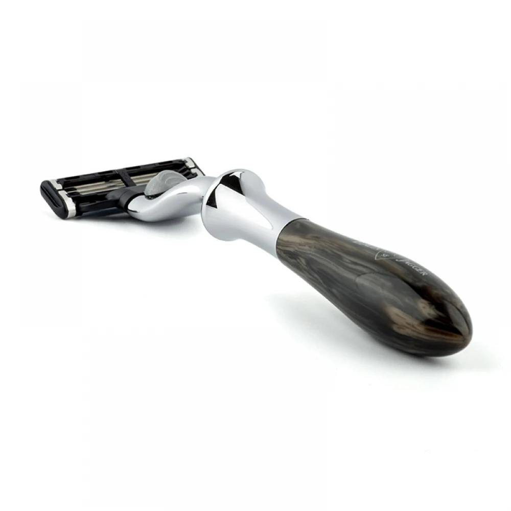 Виняткова бритва для чоловіків, які шанують традиції, але хочуть максимального комфорту. Елегантний дизайн бритви приведе Вас у захват. Імітація чорного мармуру і хромовані елементи в оформленні ручки зроблять кожен процес гоління – задоволенням! Система лез Gillette Mach3 дозволяє контролювати кожен рух головки станка. Ідеальне балансування бритви і висока якість. Бритва зроблена в Шеффілді, Англія.