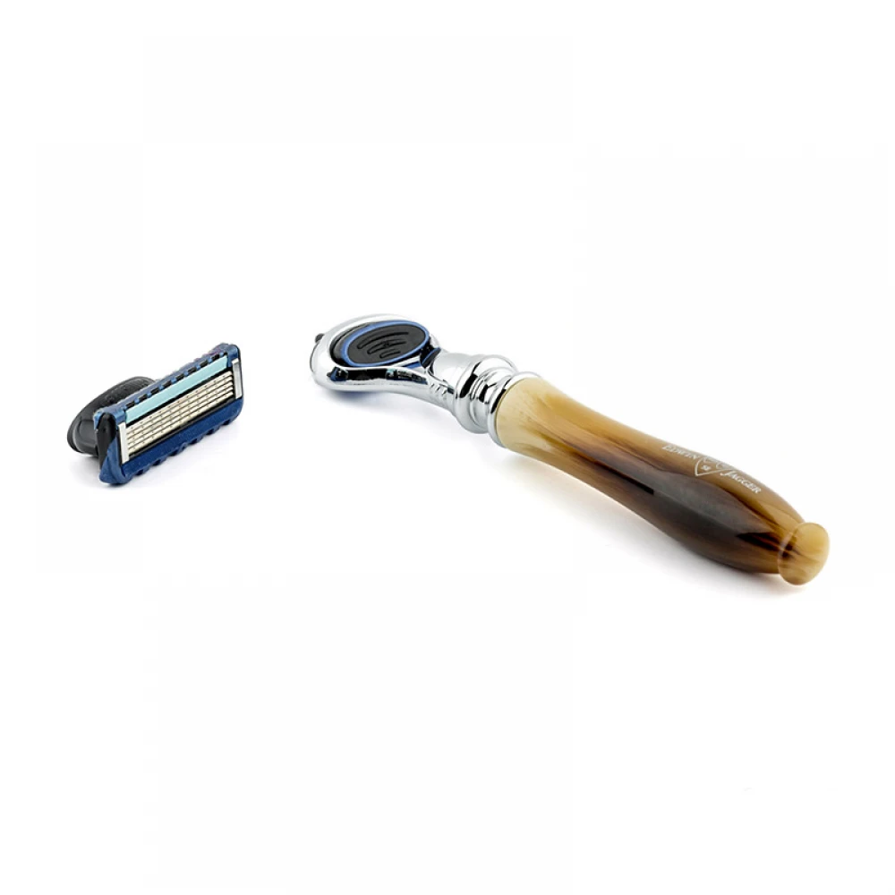 Витончений станок для безпечного гоління. Система лез Gillette Proglide-5. Станок з колекції Chatsworth з ручкою з акрилу, що імітує ріг буйвола.