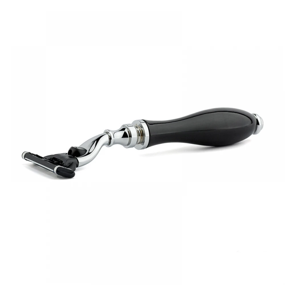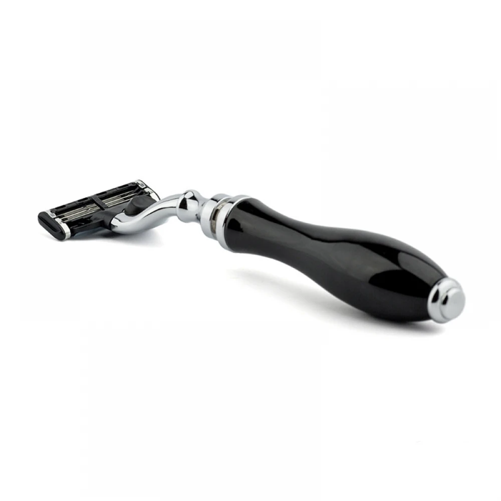 Сучасна модель Parker. Станок повністю сумісний з Gillette Mach 3 лезами, і поєднує в собі традиційний дизайн із сучасною системою картриджів. Вишуканий станок з ручкою із чорної смоли.