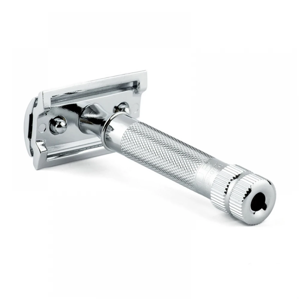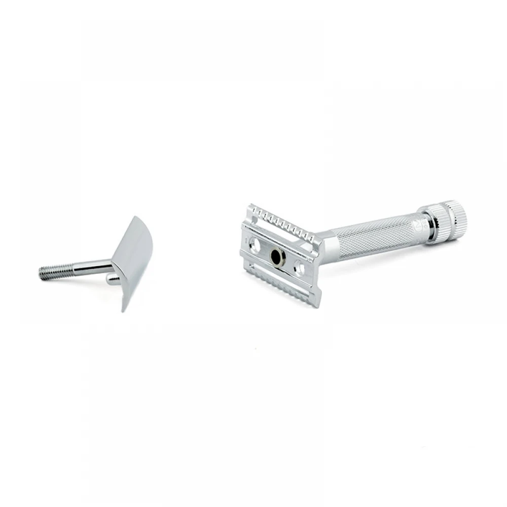 Merkur HD 34 C – це чудова Т-подібна бритва з гребенем закритого типу, яка ідеально підійде тим чоловікам, які тільки почали освоювати класичні техніки гоління. Порізатися такою бритвою ще треба примудритися, а міцний сталевий держак з перфоруванням зручно лежить у руці.