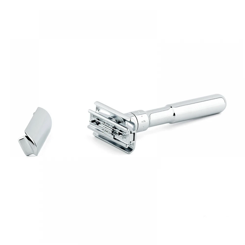 Знімна кришка для швидкої зміни лез бритви, не послаблюючи гвинта (як у випадку із звичайними моделями без регулювання розширення леза).