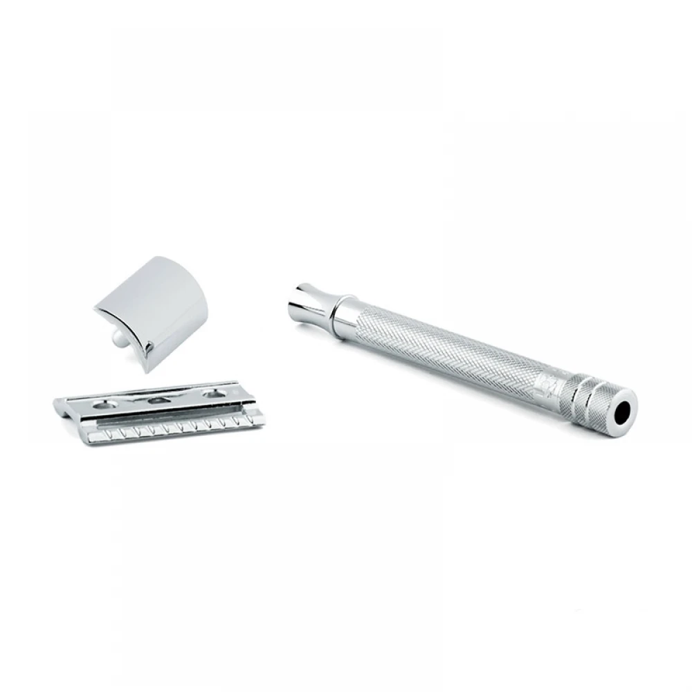 Класична Т-подібна бритва Merkur 23C – це просто ідеальний варіант для тих, хто тільки почав освоювати традиційні техніки гоління. Тип головки станка – закритий. Це означає, що порізатися ним практично неможливо.