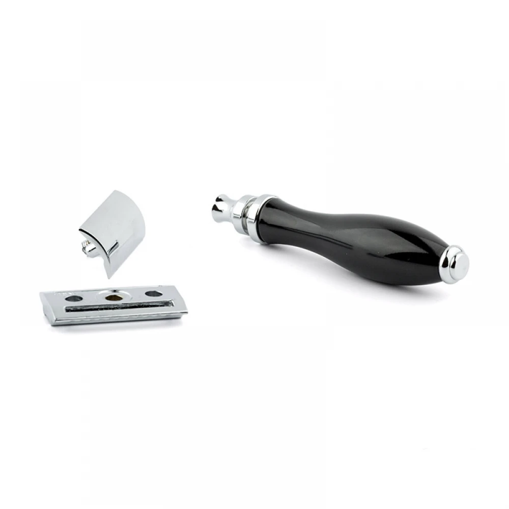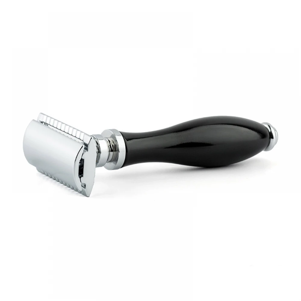 Вага розподілена по всій довжині бритви. Відмінно збалансована бритва з ручкою з чорної смоли стане корисним і красивим доповненням Вашої ванної кімнати.